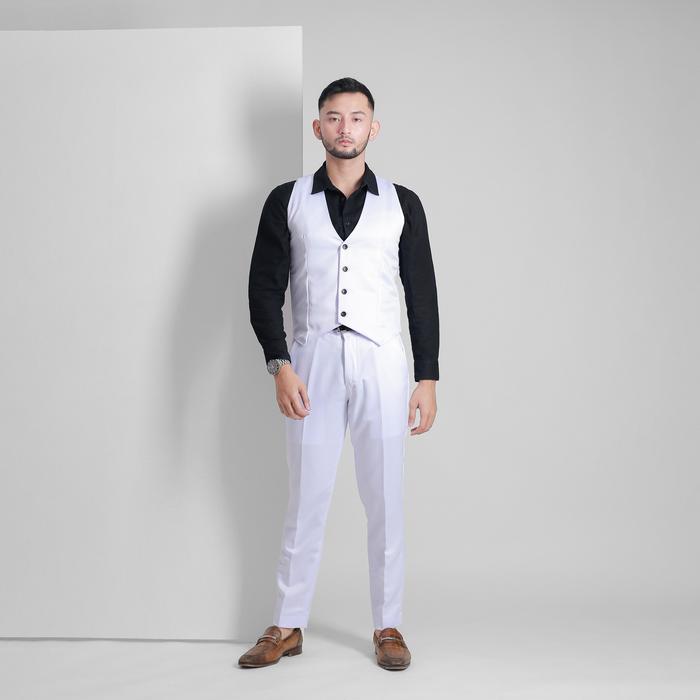 SETELAN JAS CELANA & ROMPI PRIA - SLIM FIT - TUXEDO PUTIH- PEAKY PREMIUM SERIES - GOLDY - JAS, M