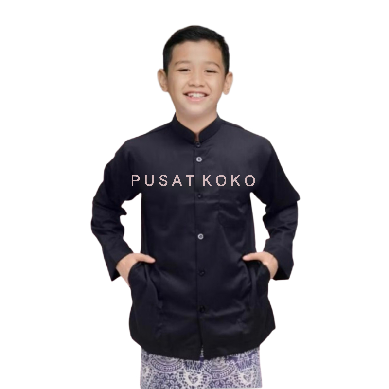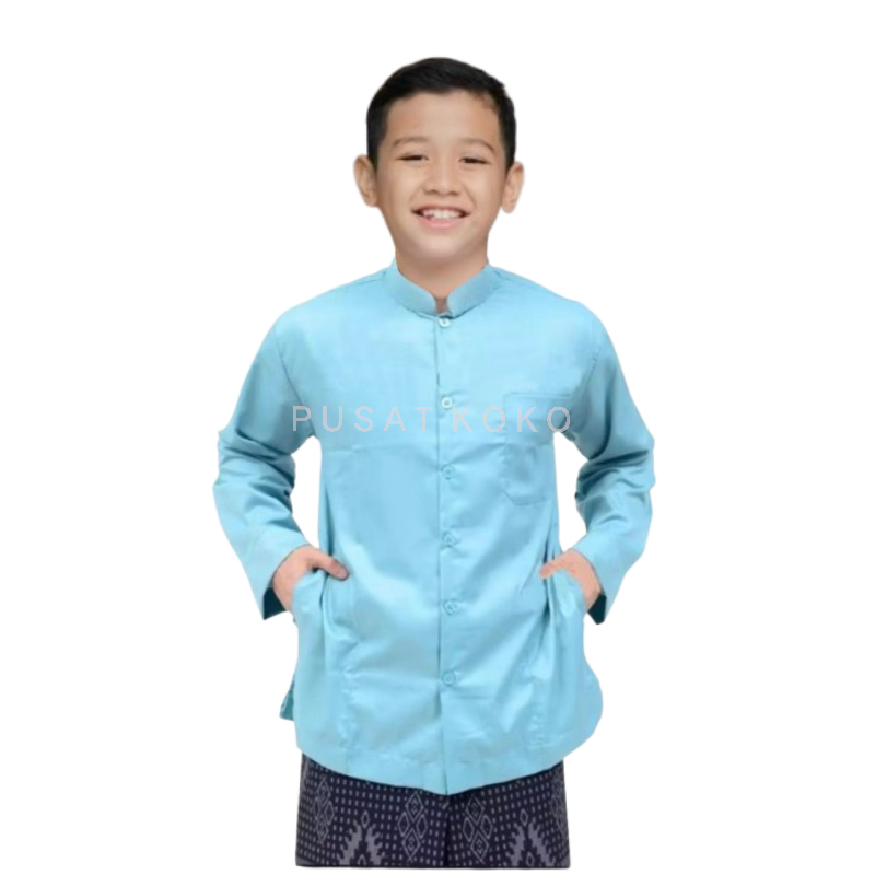 Baju Koko Anak Laki laki Polos SD SMP TPQ PONPES Lengan Panjang Saku Samping