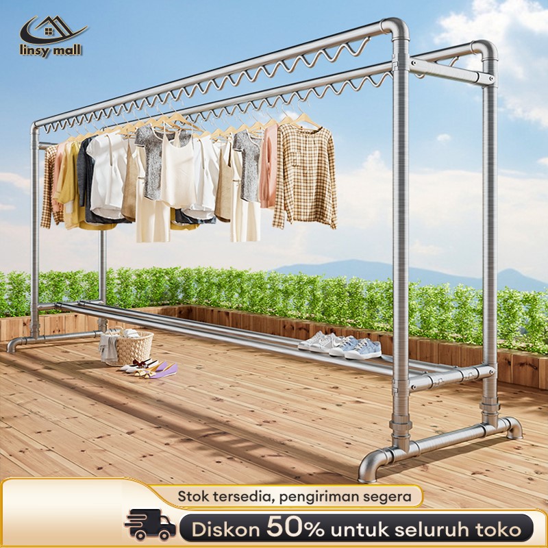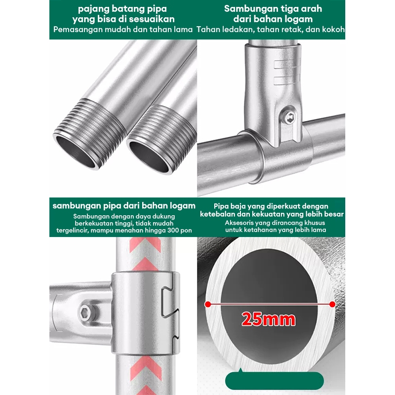 HOMEQU Jemuran Baju Lipat Portable 160X80X160cm Stainles Jumbo Dinding Kecil Palang 9 Besi Almunium Gantung Pakaian Bayi