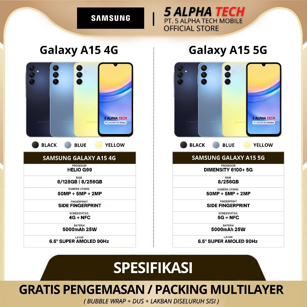SAMSUNG Galaxy A15 5G 8/256GB 8/128GB Garansi Resmi Samsung
