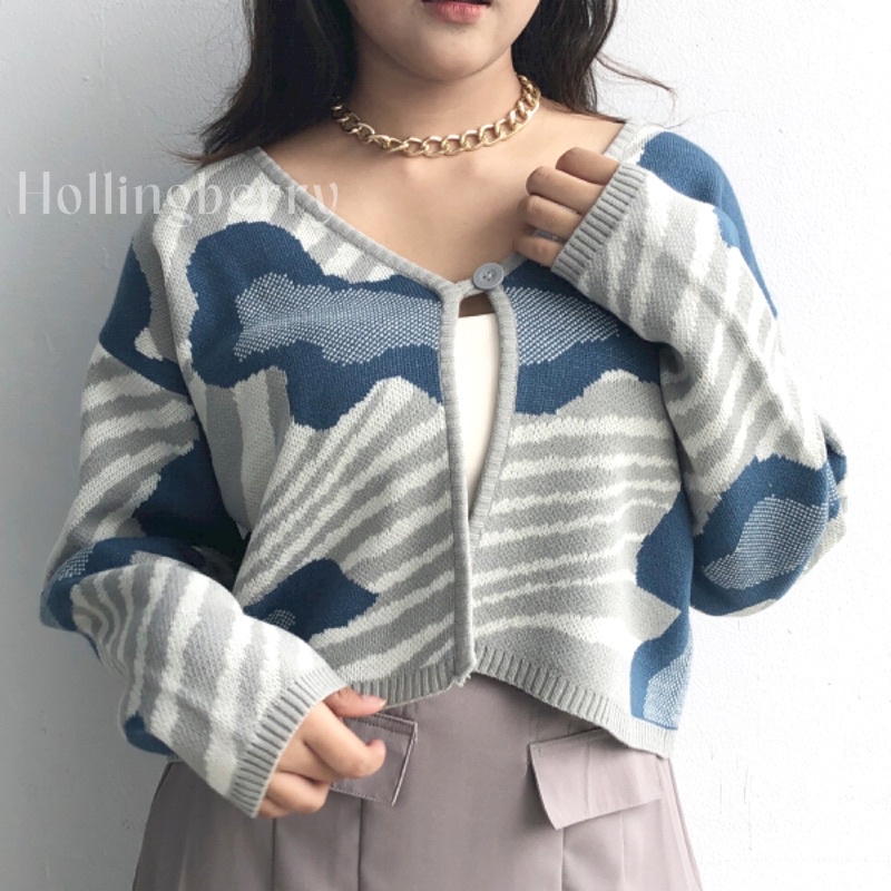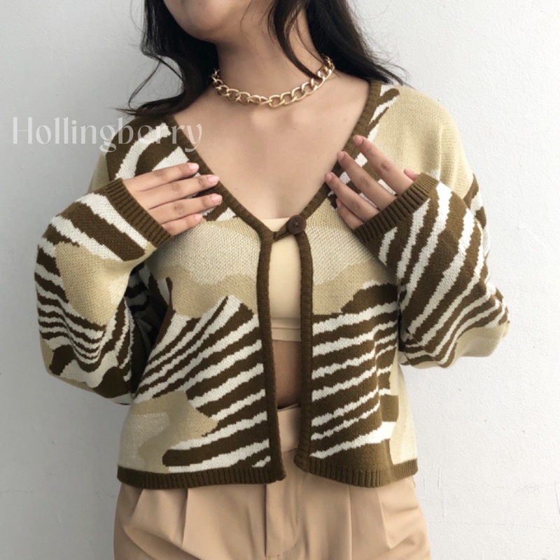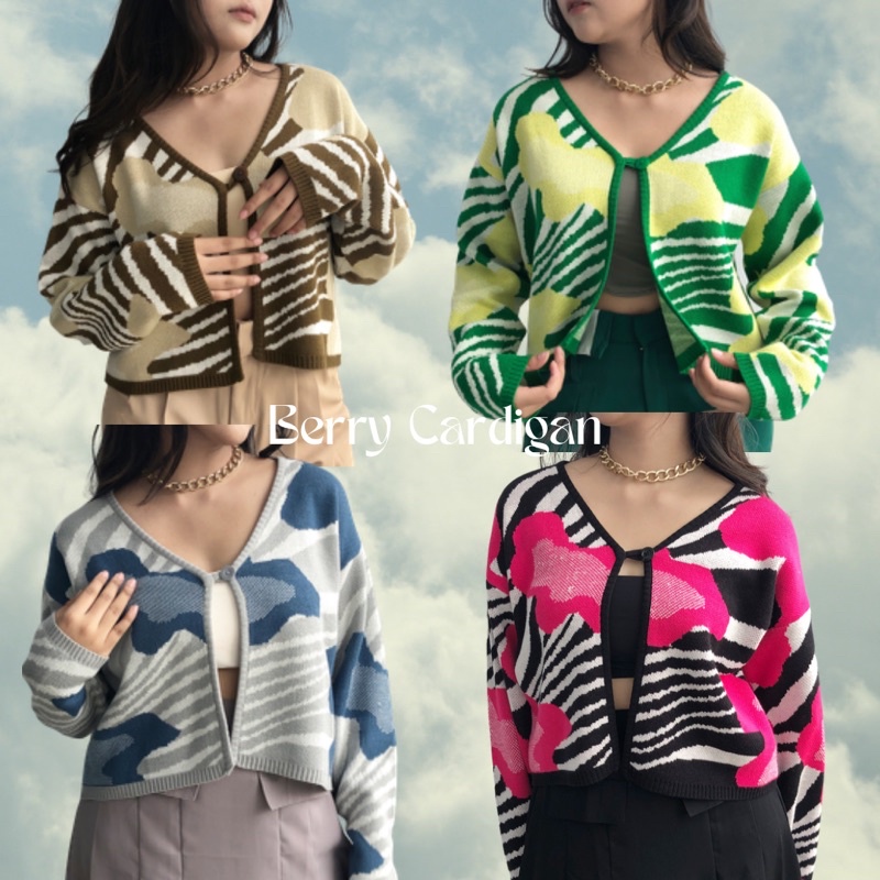 Cardigan Knit Hollingberry Berry Rajut Wanita