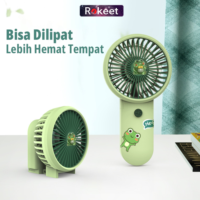Kipas Angin Rokeet Lipat Mini Portable Karakter Hand Held Dengan Sticker