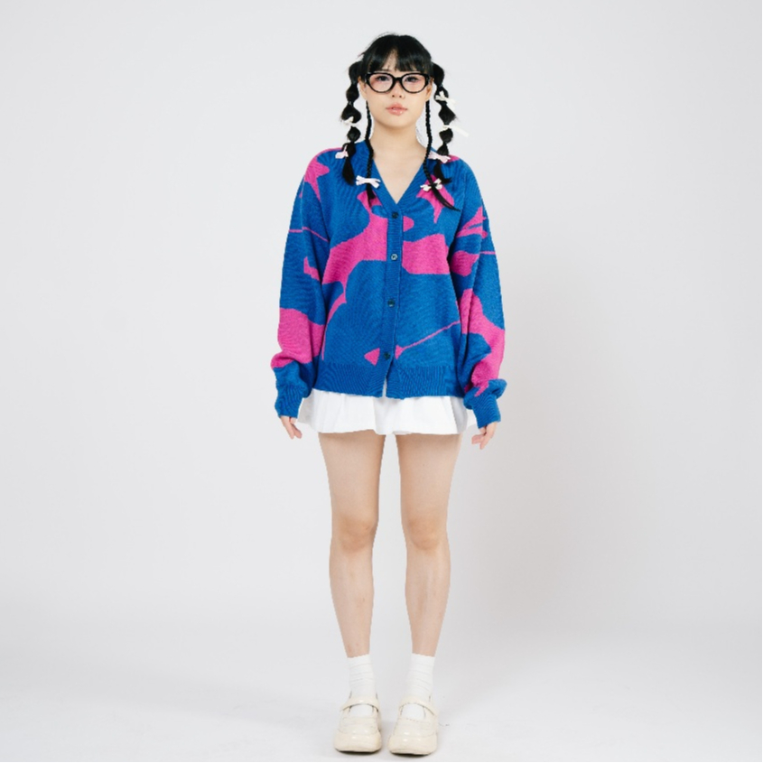 Cardigan Oversized Gurls Club Knitwear Wanita Warna Stormy Fushia