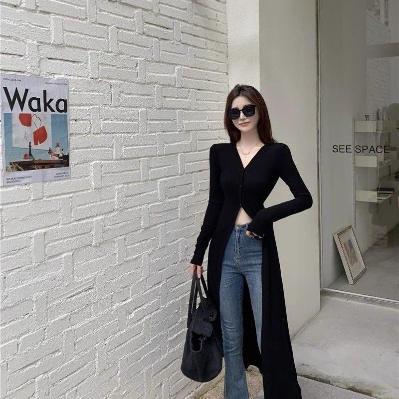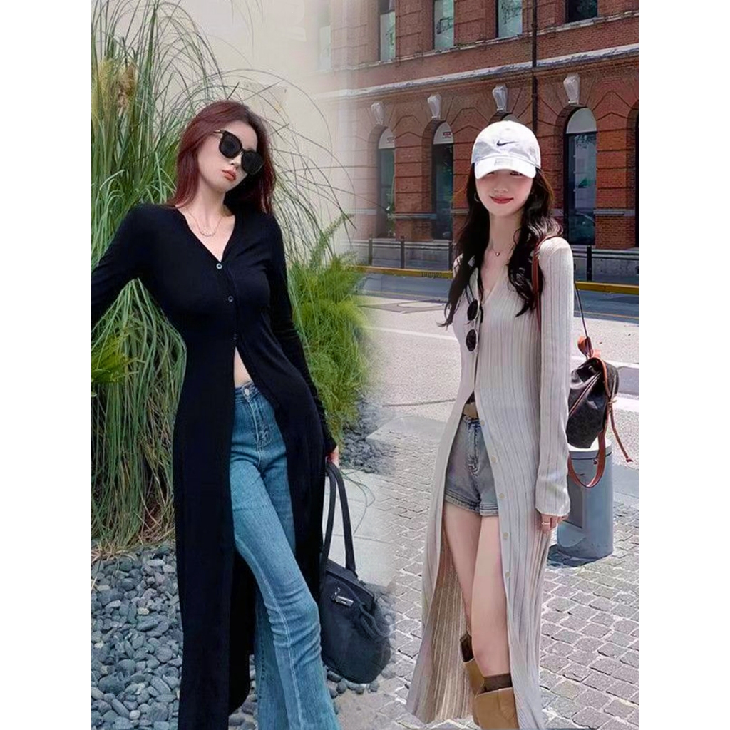 Cardigan Panjang Yujie Fan Gaya Keren Sutra Es Street Style Wanita