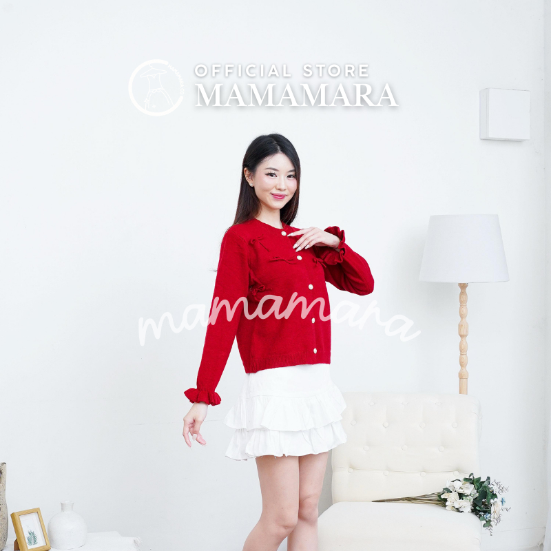 Cardigan Pita Mamamara Timbul Imut Ribbon Lembut Lengan Panjang Wanita