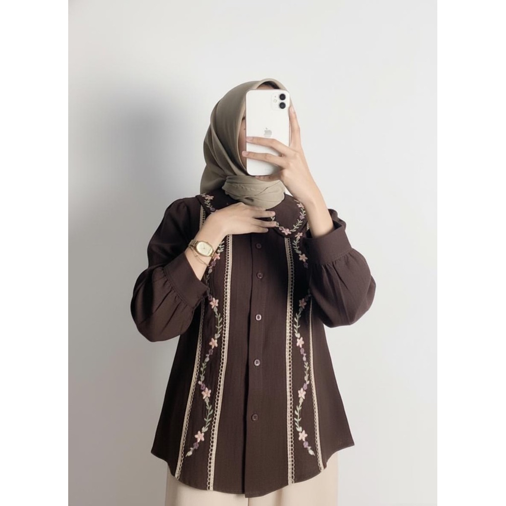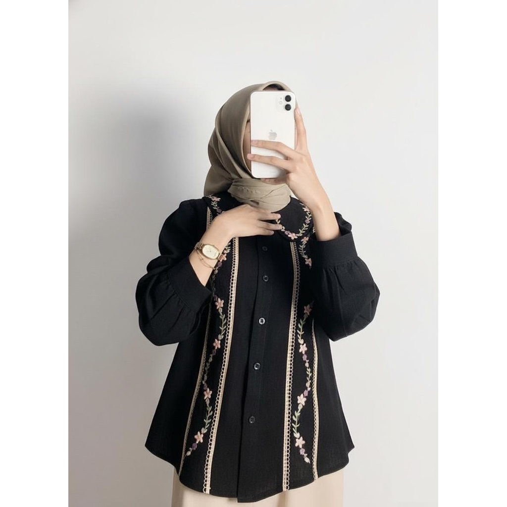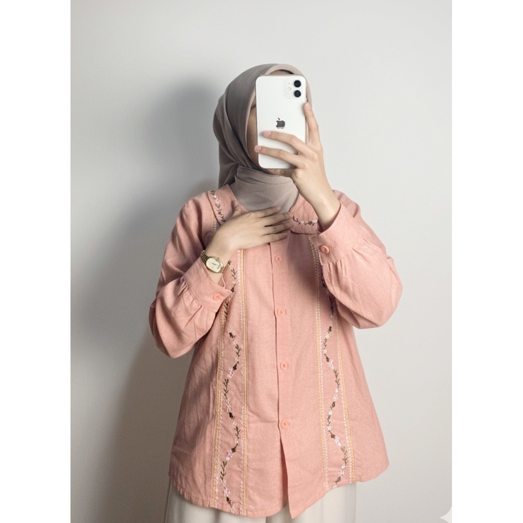 Nadine blouse atasan wanita - kemeja linen bordir - kemeja lengan panjang - blouse terbaru