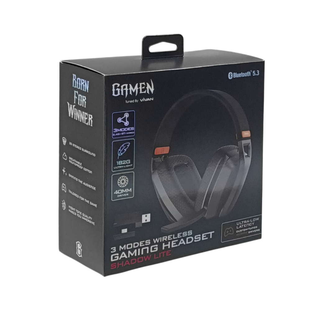 GAMEN Headset Bluetooth 5.3 Gaming Wireless 3 Mode Koneksi Low Latency Driver 40mm Shadow Lite -SBD-