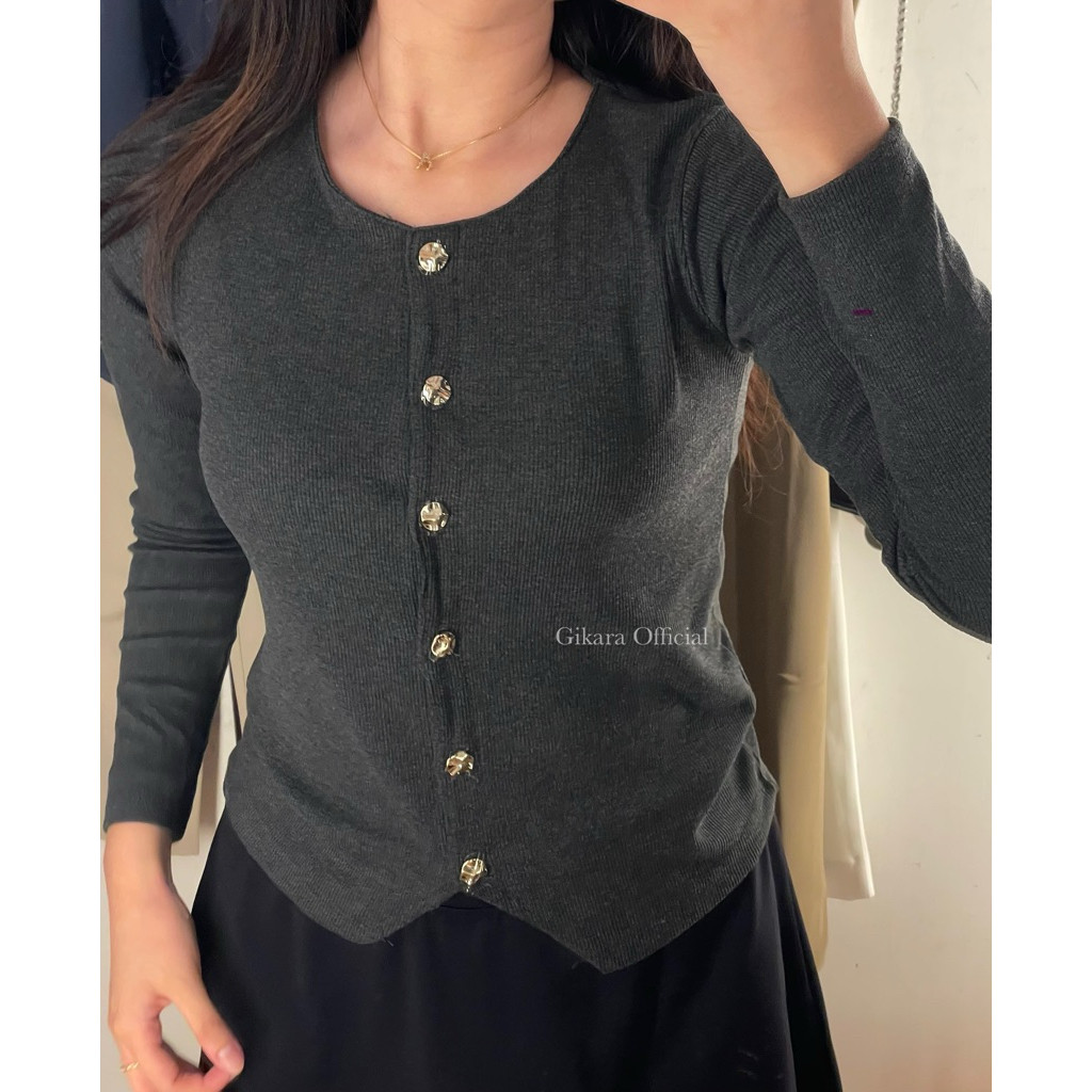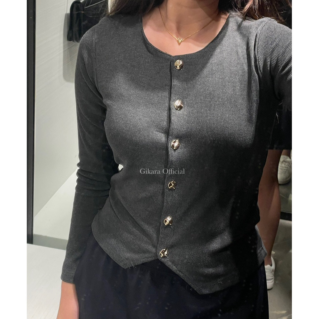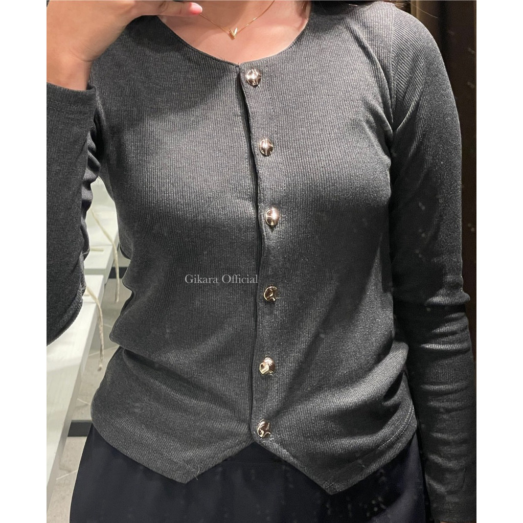 Cardigan Knit Rib Soul Gold Button Casual Womens Top Office K52