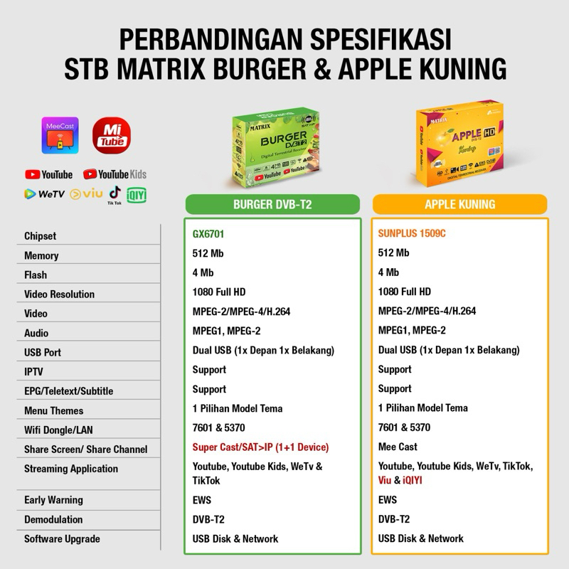 STB + HDMI + Dongle, STB Matrix Merah, STB Merah + HDMI, STB Apple Kuning, Apple Kuning + HDMI, STB Burger + RCA, STB Burger + HDMI, STB Burger + Dongle