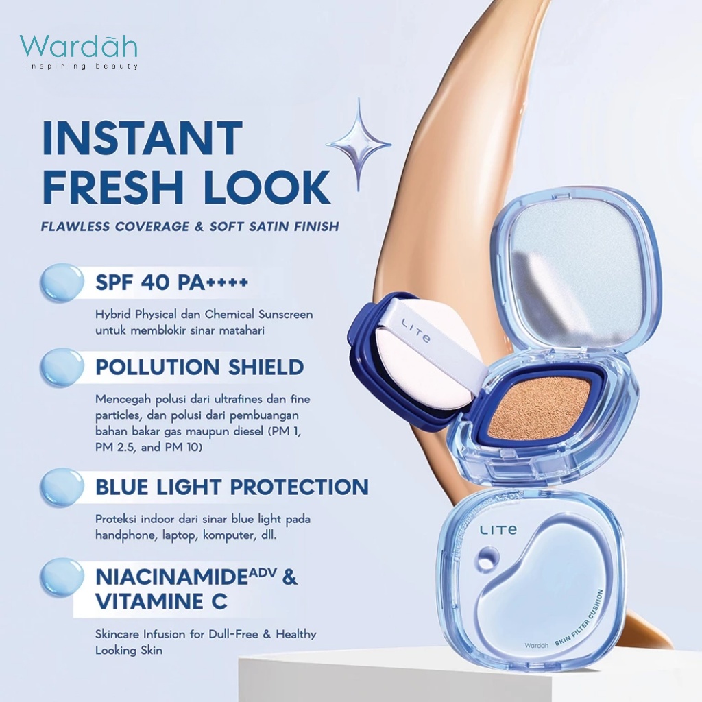 WARDAH Lite Skin Filter Cushion 11g - Wardah Skin Filter Cushion | Make Up Ringan Tahan 8 Jam