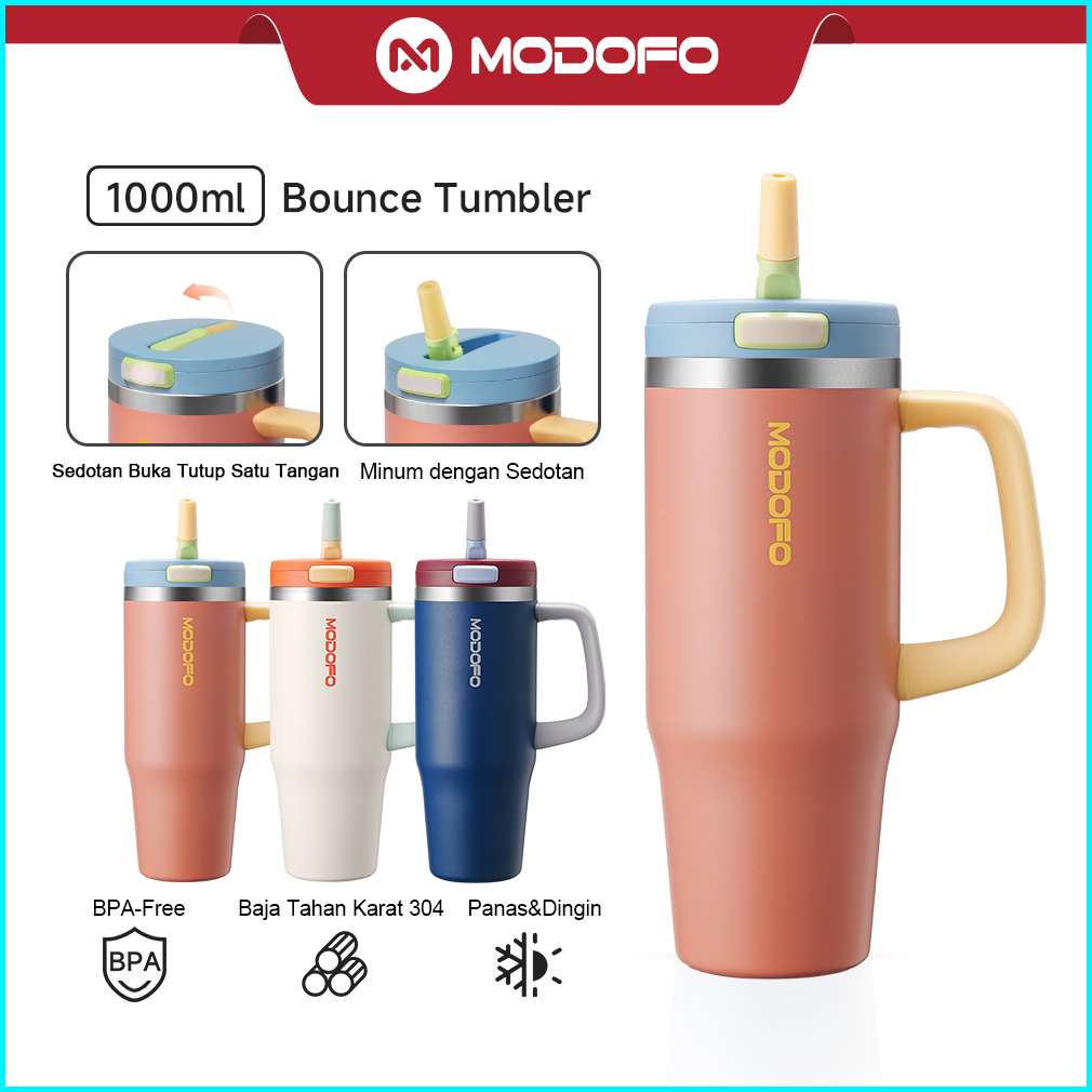 Modofo Tumbler Stainless 1000ml Botol Minum Aesthetic Bounce Tumbler Tahan Panas Dan Dingin 24 Jam Natal