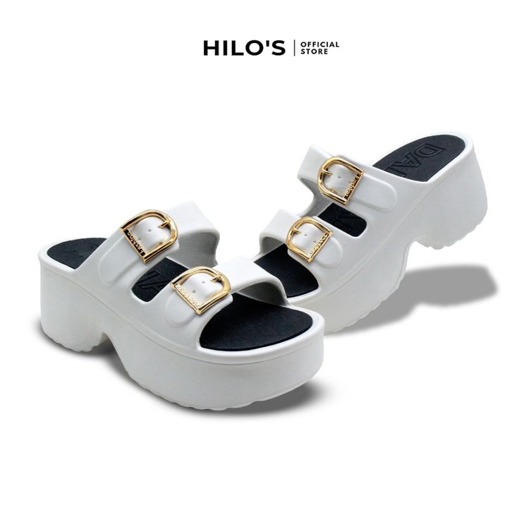 Sandal wanita slip on tinggi model terbaru strap dua sandal wedges