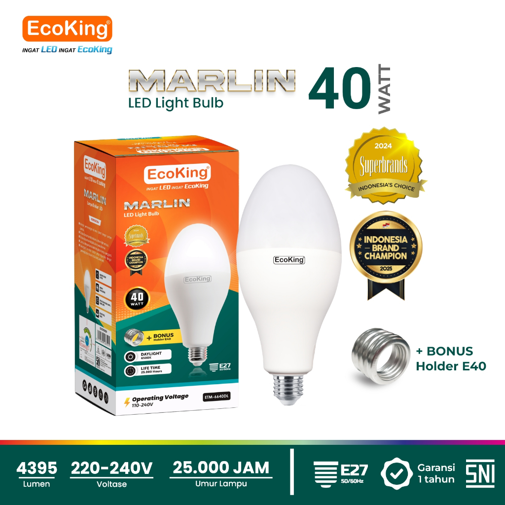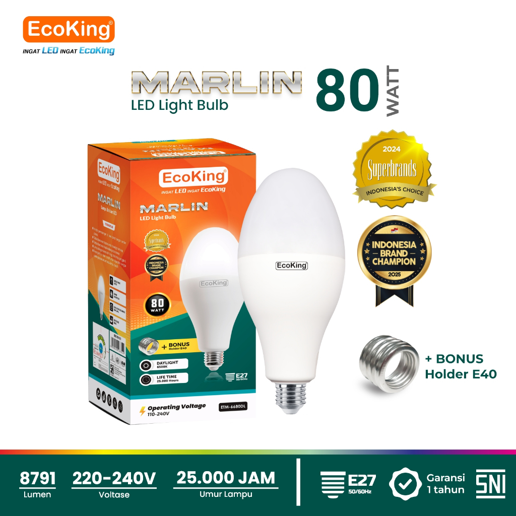 Lampu Bohlam Ecoking Led Marlin 40W 50W 80W 100W Nonmercury Putih Kuning