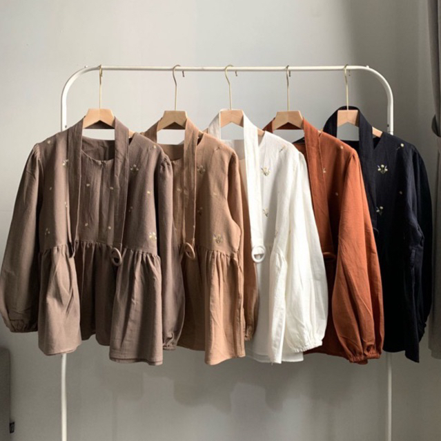 Reyna Top atasan kemeja blouse wanita linen bordir korean style by biel the label is in