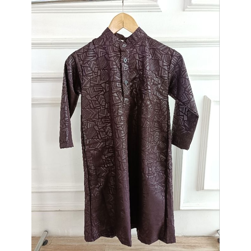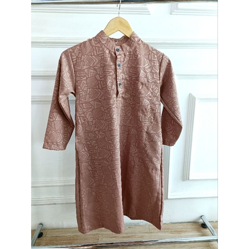 ELRUMI baju muslim gamis anak laki laki jubah emboss usia 1-15 tahun katun micro mahogany