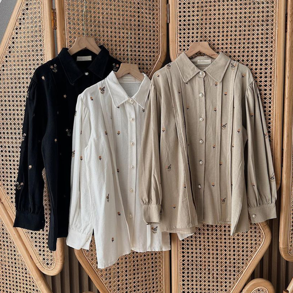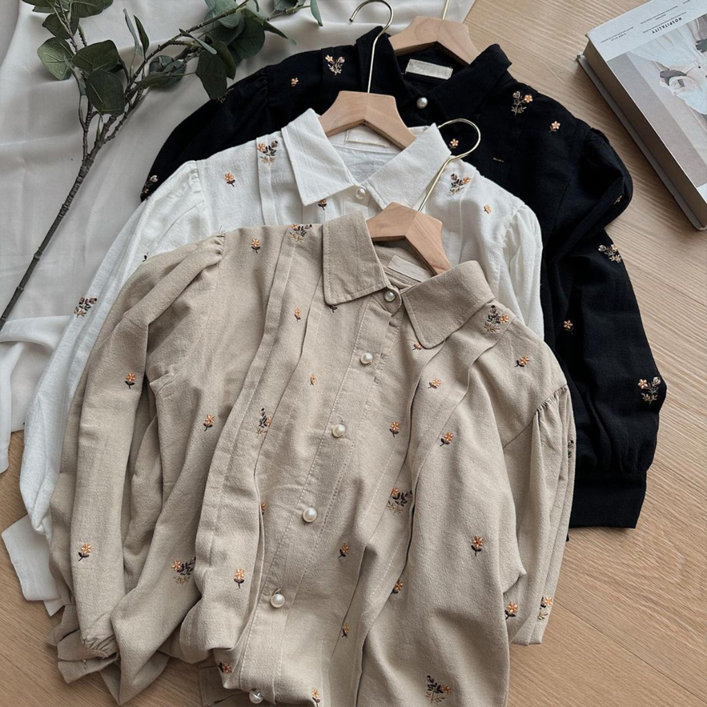KONVEKSI BANDUNG | BERINA Flower Kemeja Linen Wanita Lengan Panjang Korean Style Motif Bunga
