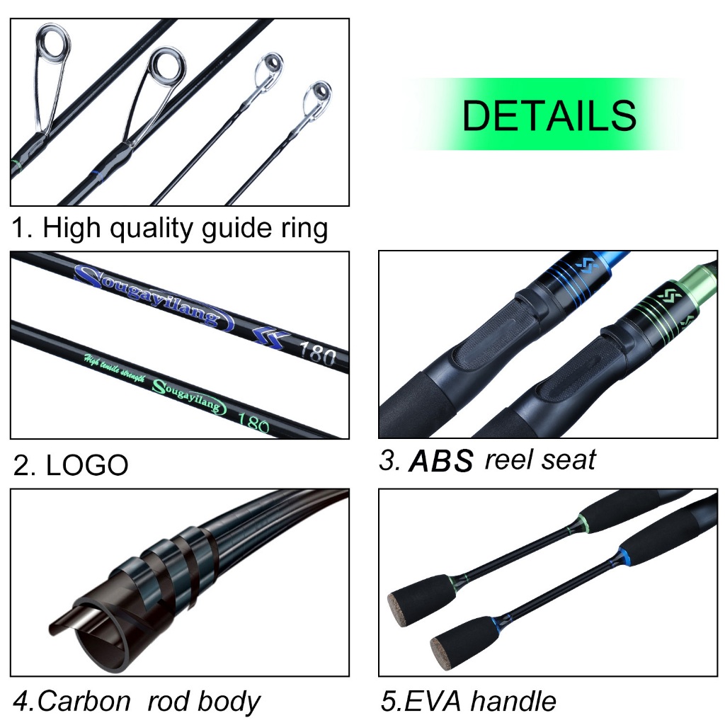 Sougayilang Joran Pancing 1.8M/2.1M Casting/Spinning Carbon Fiber 2 Section Max Drag 8kg Saltwater Freshwater Joran BC
