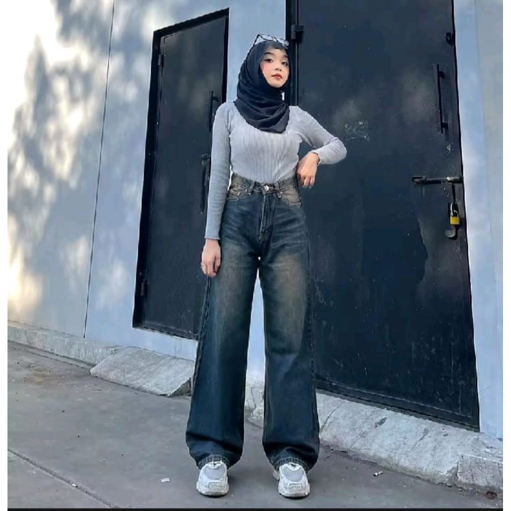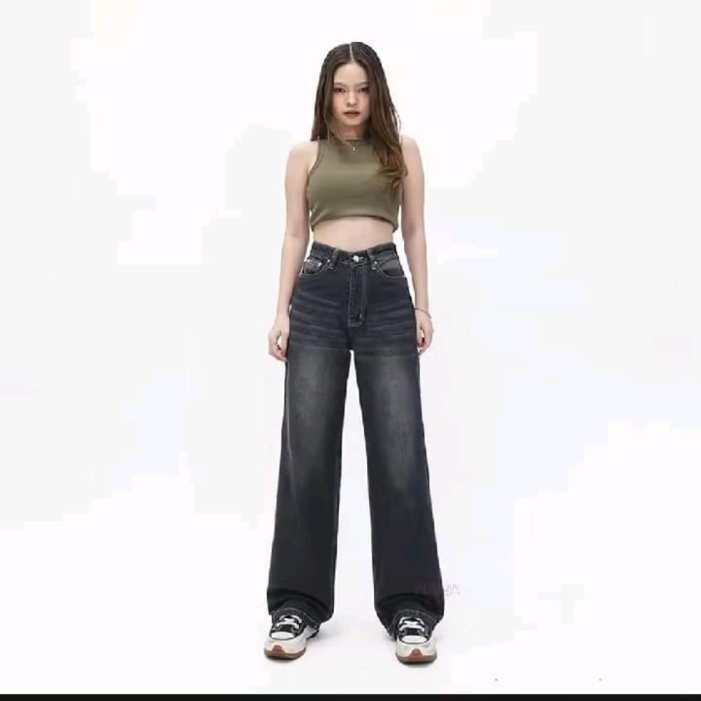(Unisex) Celana Highwaist Loose Baggy Jeans Oversize Weekend Korean Terbaru Dan Modis