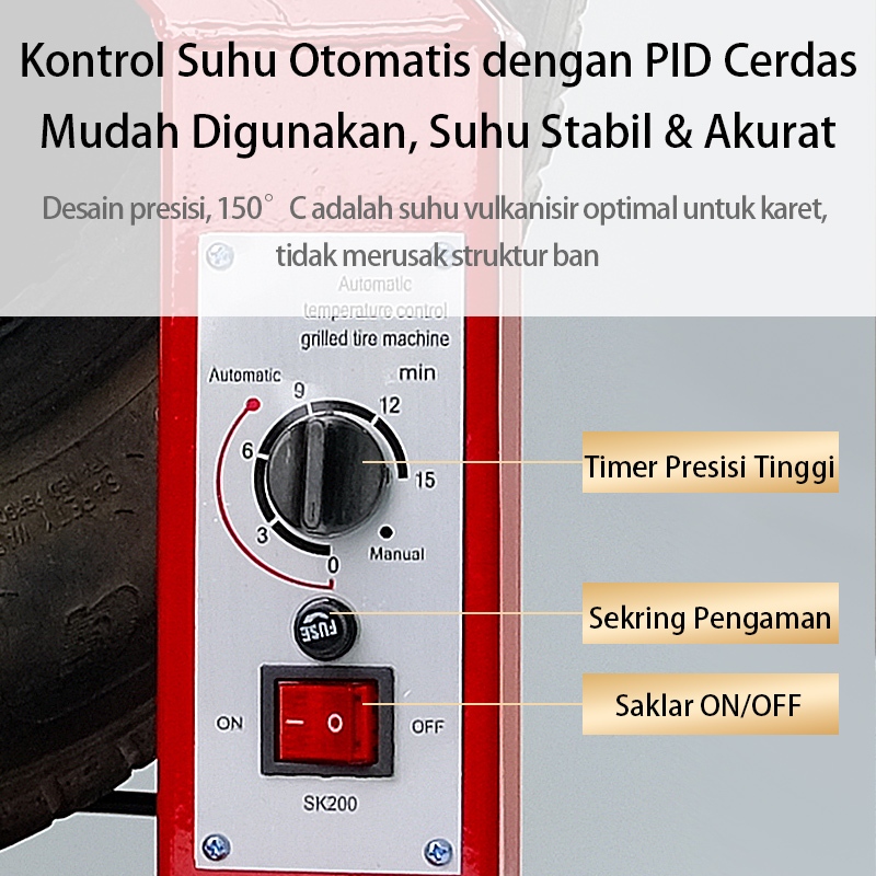 CHIGE Mesin Tambal Ban Listrik Vulkanisir Otomatis Alat Press Ban Panas 140-165°C Mesin Perbaikan Ban Motor Mobil