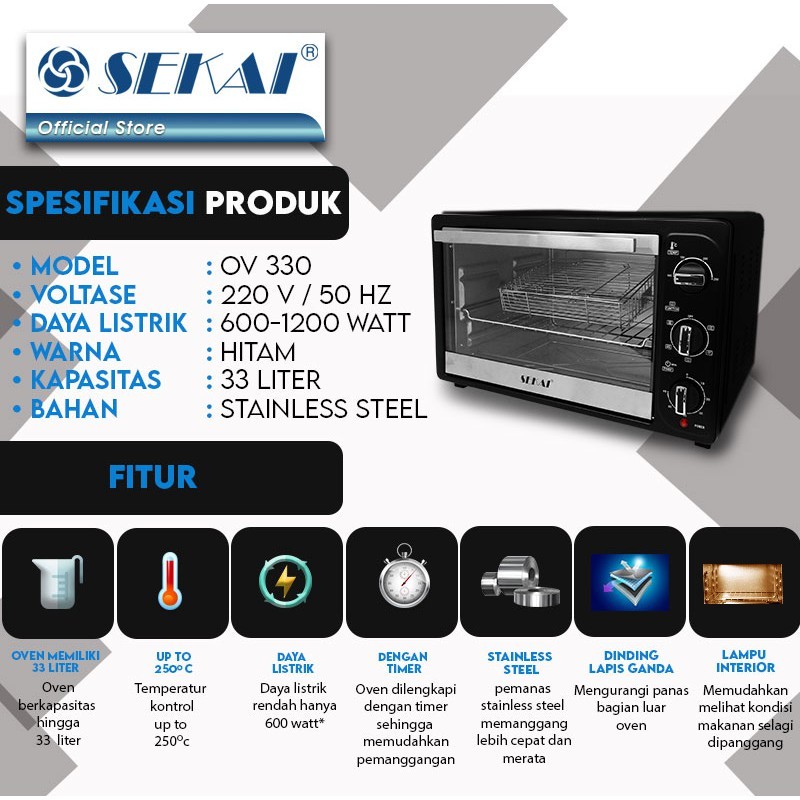 Oven Listrik Low Watt 36L/33L Model Ov 330 Dari Sekai