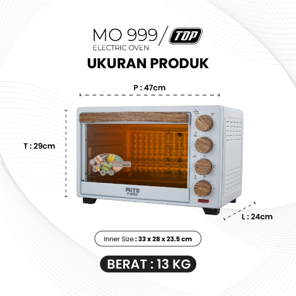 Oven Listrik 28L Seri Top Wood Mo999 Original White Dari Mito