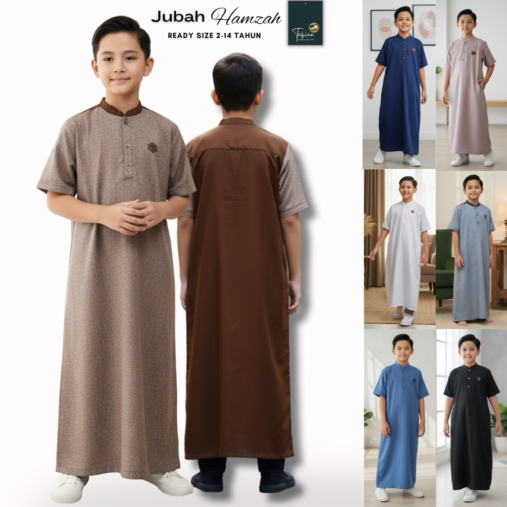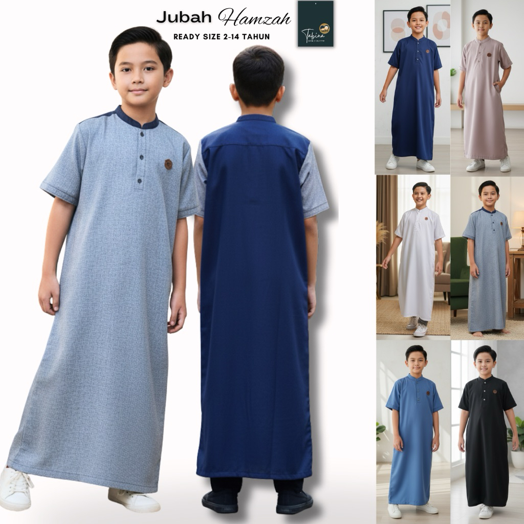 Jubah Gamis Anak Laki laki Jubah Gamis Anak Laki Laki dan Remaja Lengan Pendek Tabina Seri Hamzah Usia 2 Hingga 14 Tahun