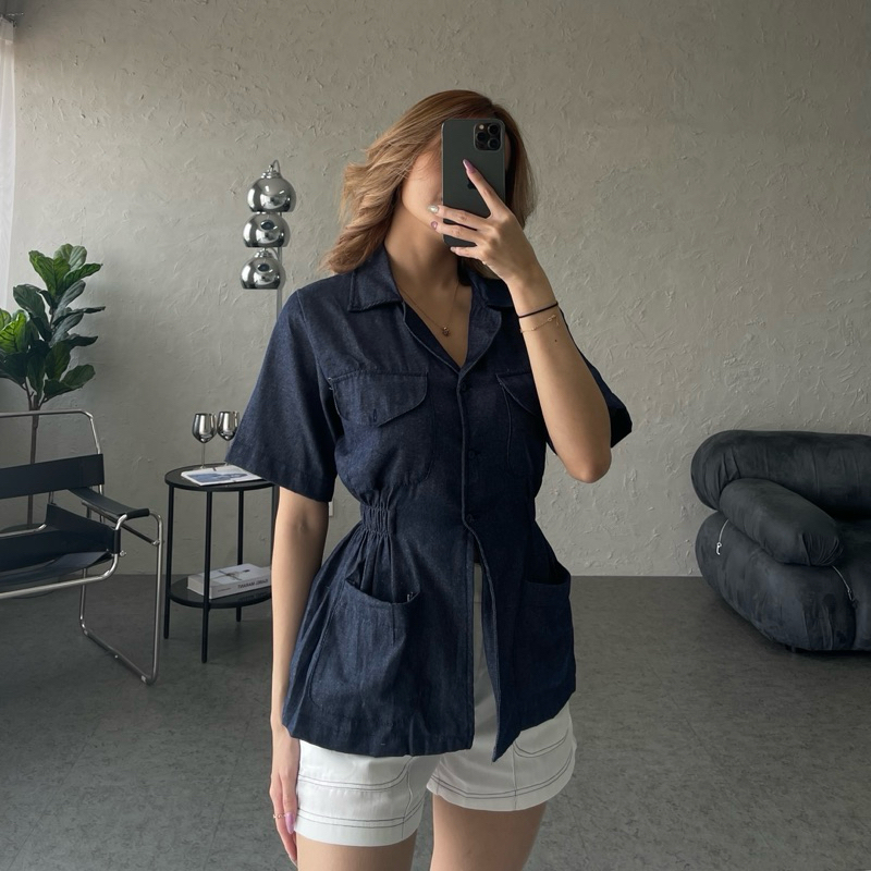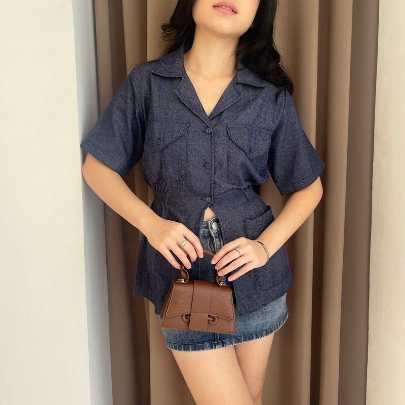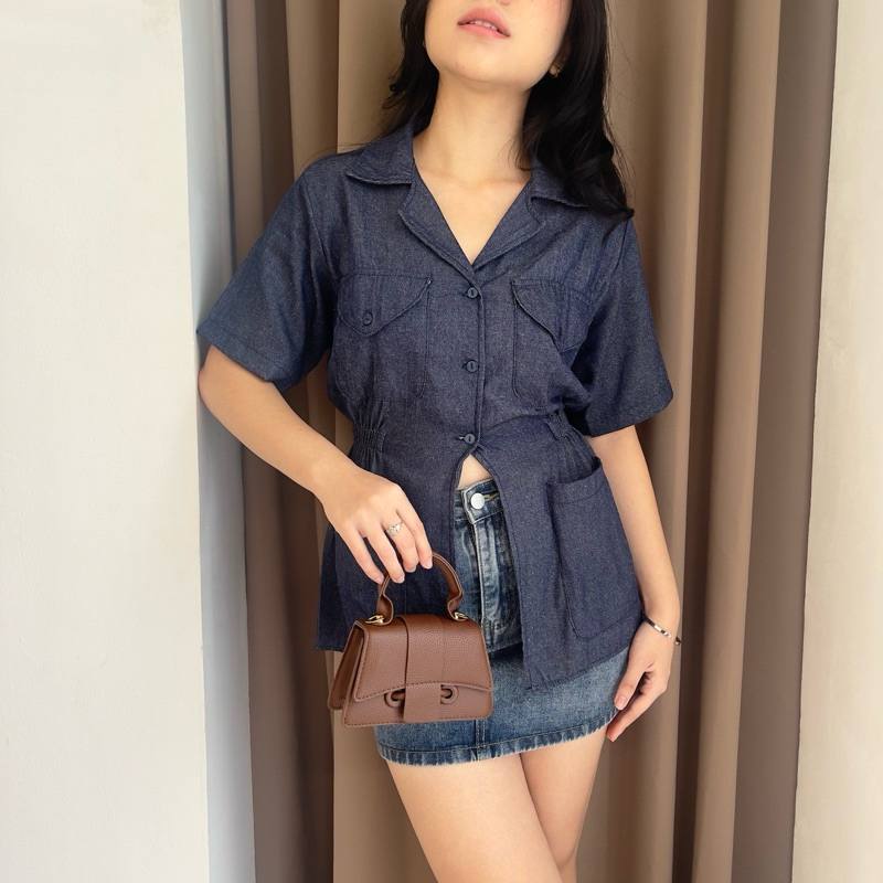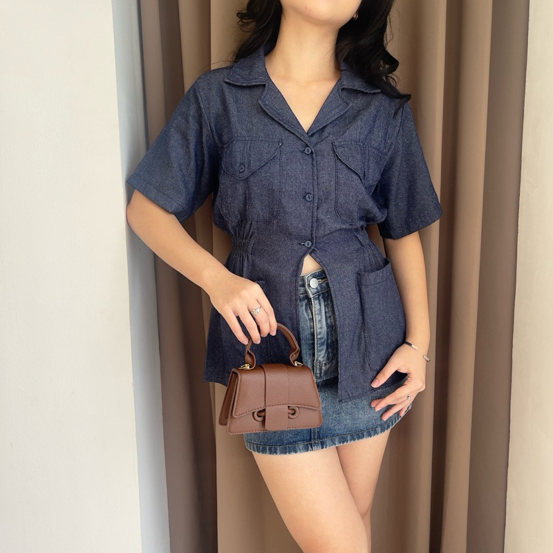 Vivi Slit Shirt Denim Polycotton