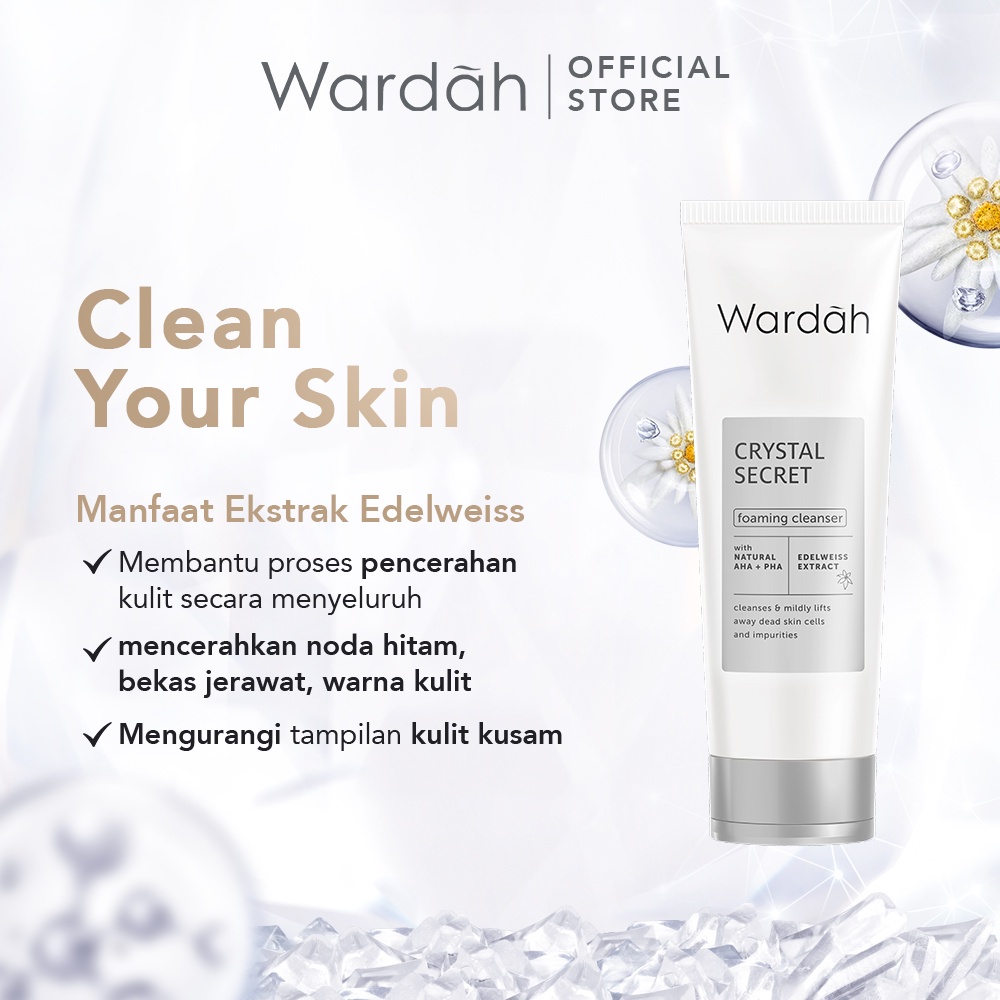 Wardah Crystal Secret Foaming Cleanser with Natural AHA+PHA 100 ml - Sabun Cuci Muka Mencerahkan