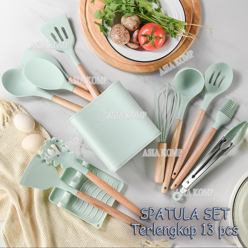 Silicone Utensil Set 13 Pcs plus Tatakan Spatula dan Bucket Peralatan Masak Terlengkap