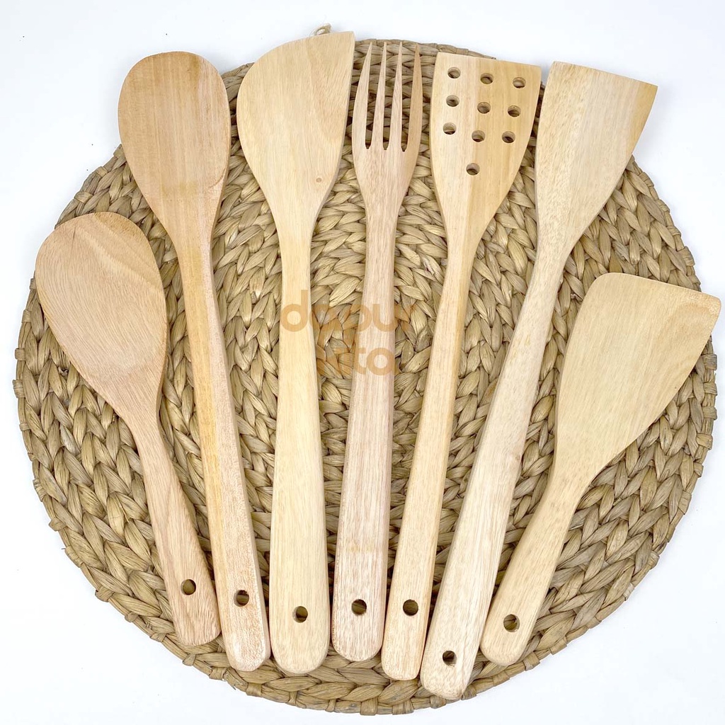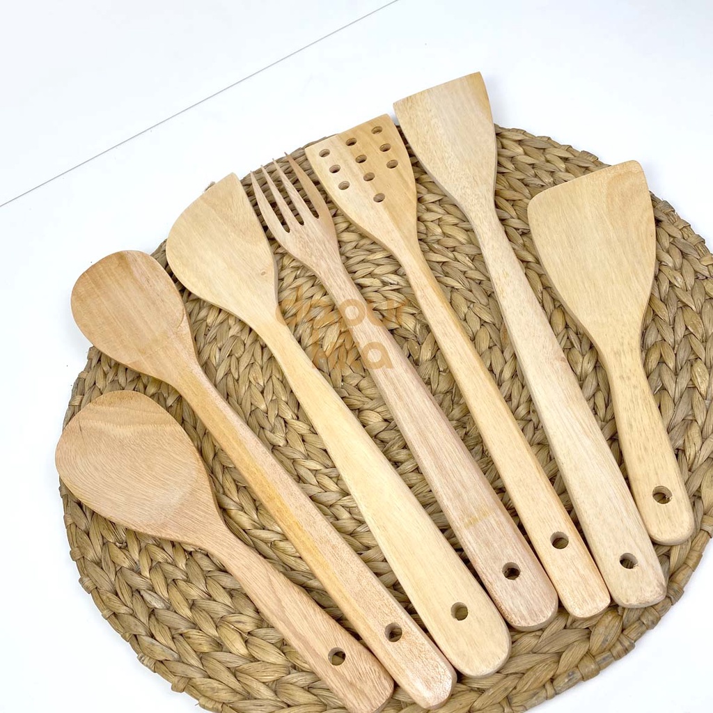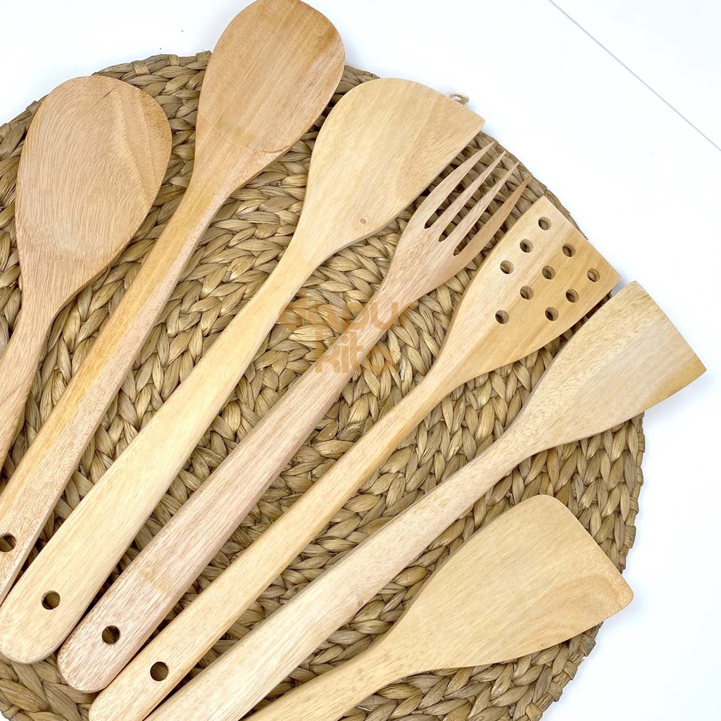 Spatula Kayu Set (Isi 7 Pcs) Sutil / Sodet / Garpu / Centong Nasi
