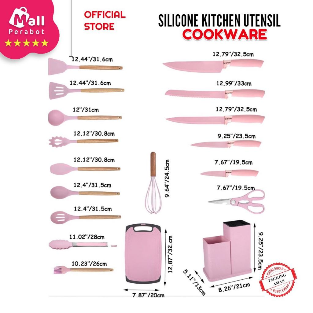 Mall Perabot | Set Alat Dapur Spatula Silikon | Sutil Silicone Kitchen Set 19 In 1 Spatula Tahan Panas Free Wadah