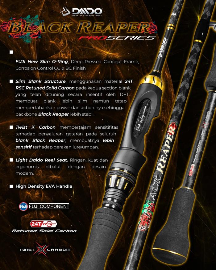 Joran Pancing Daido Black Reaper Pro Series Carbon Solid 120cm-180cm (6kg-12kg) Fuji - Toms Fishing - 180cm/10-20lbs