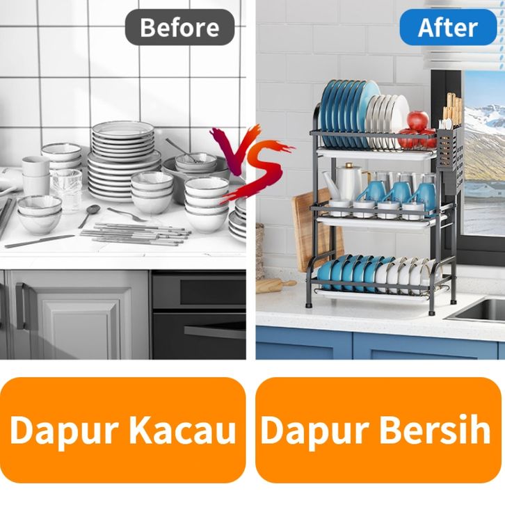 Rak Piring Stainless Steel Rak Dapur Cuci Piring Wastafel Rak Piring Penyimpanan Rak Peralatan Dapur Dengan Aksesoris 2