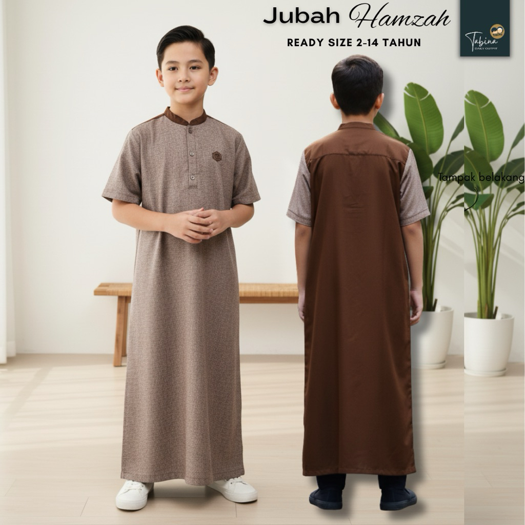 Jubah Gamis Anak Laki laki Jubah Gamis Anak Laki Laki dan Remaja Lengan Pendek Tabina Seri Hamzah Usia 2 Hingga 14 Tahun