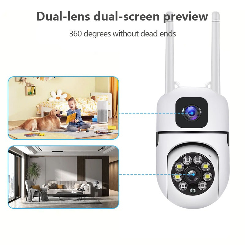 Cctv V380 Pro 2 Antena Z2 Dual Lens 5Mp 1080P Ip Camera 360 Rotation Pelacakan Manusia Dua Arah