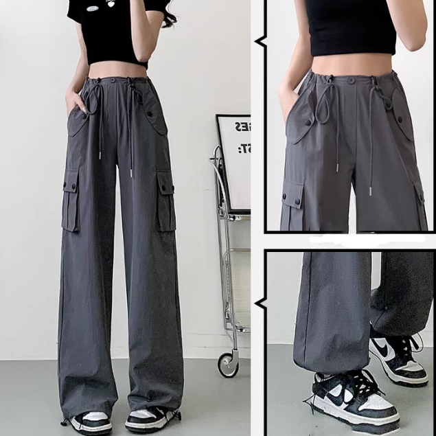 Cargo Celana Panjang Wanita Korean Fashion Highwaist Loose