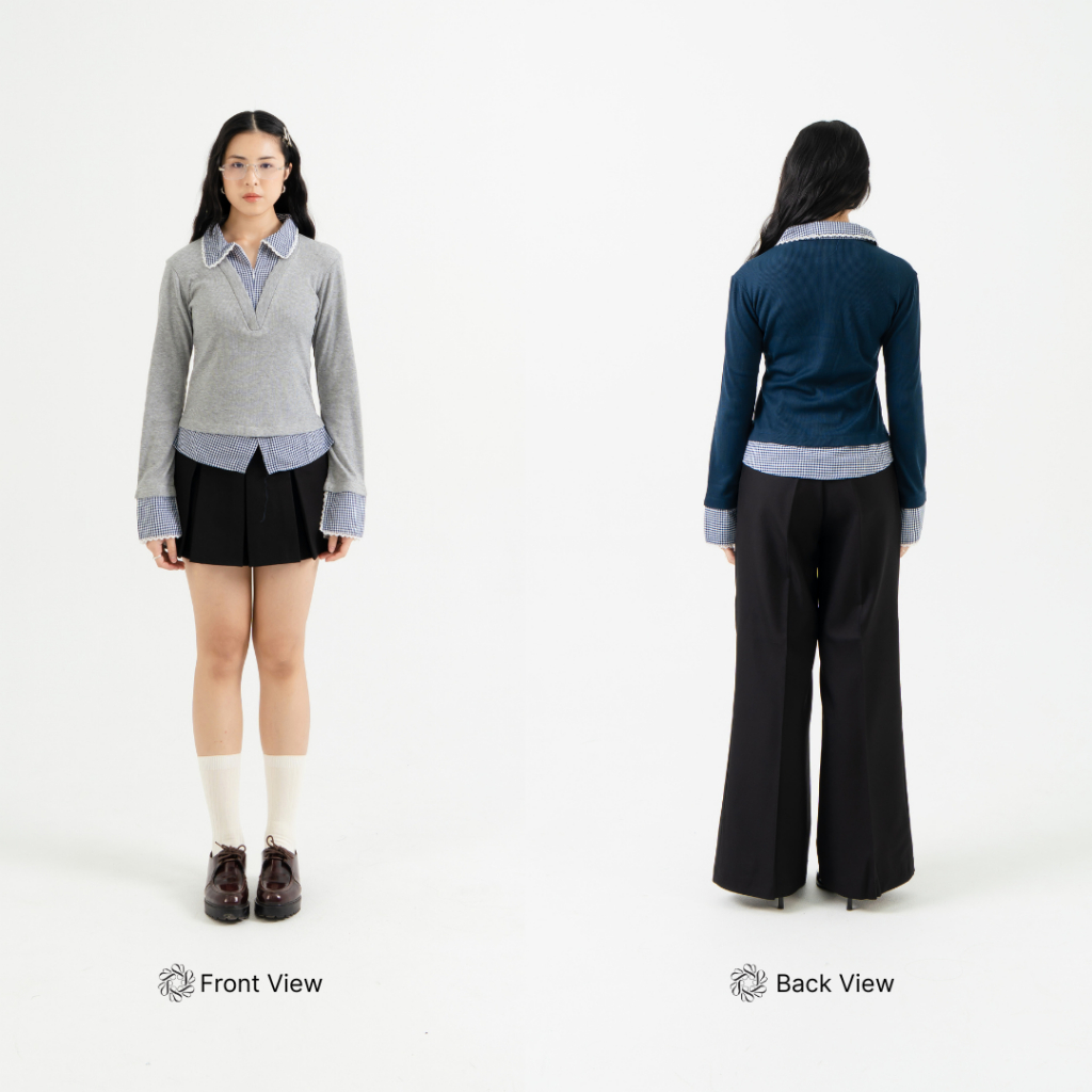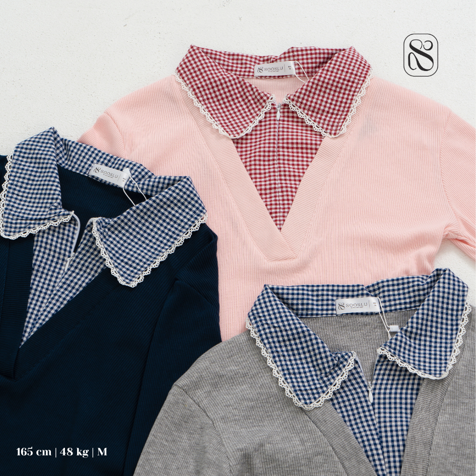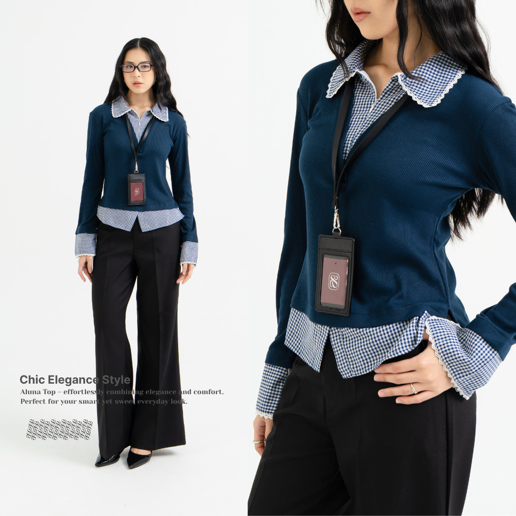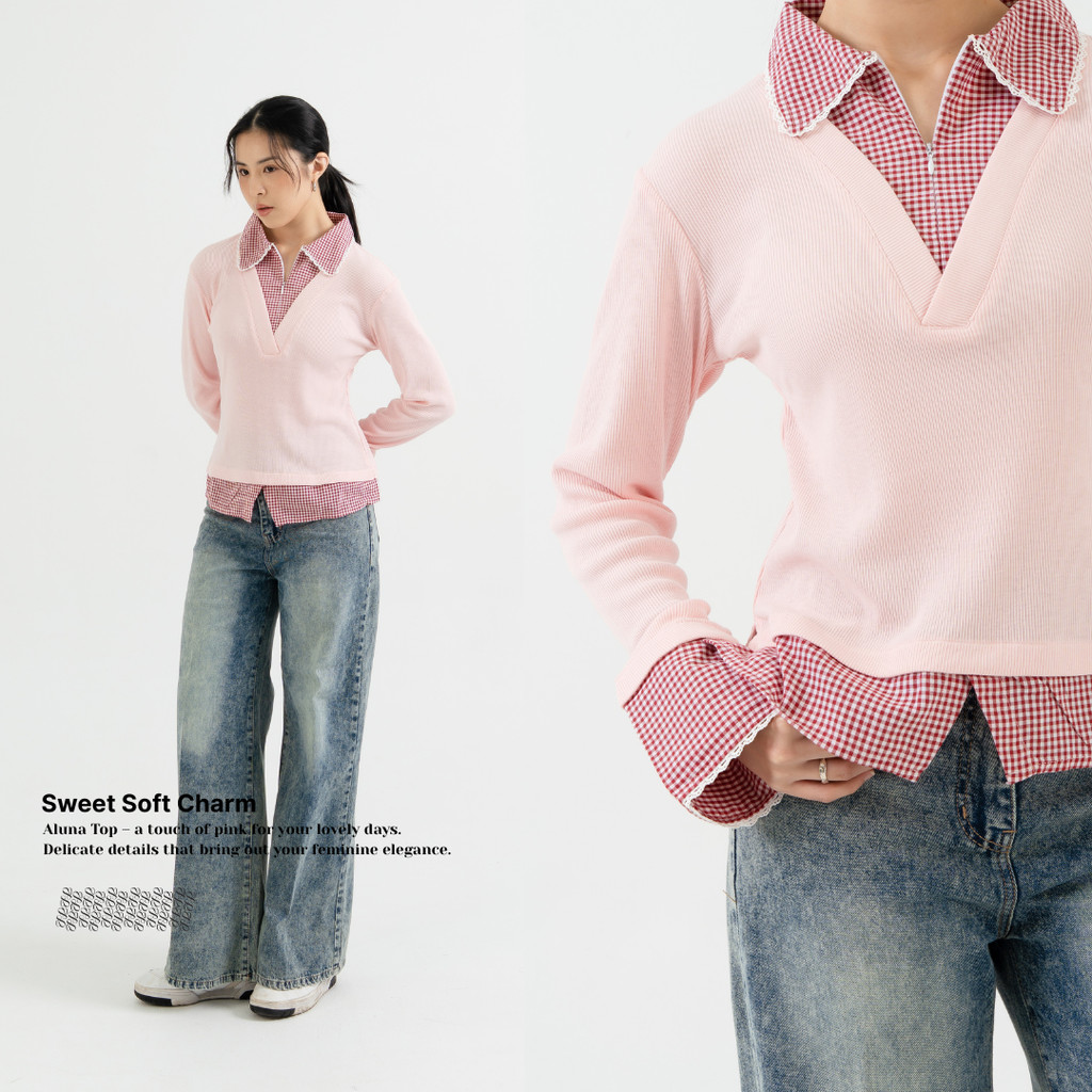 Aluna Top Long Sleeve Combi Knit Zipper Shirt - Atasan Wanita Kemeja Lengan Panjang Renda | Ng2A
