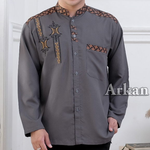 Baju Kemeja Koko Pria Dewasa Lengan Panjang Koko Bordil Kombinasi Batik M L XL XXL