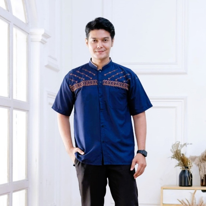 Baju Koko Pria Dewasa Motif Bordir Lengan Pendek Busana Muslim Kasual Pria Baju Lebaran