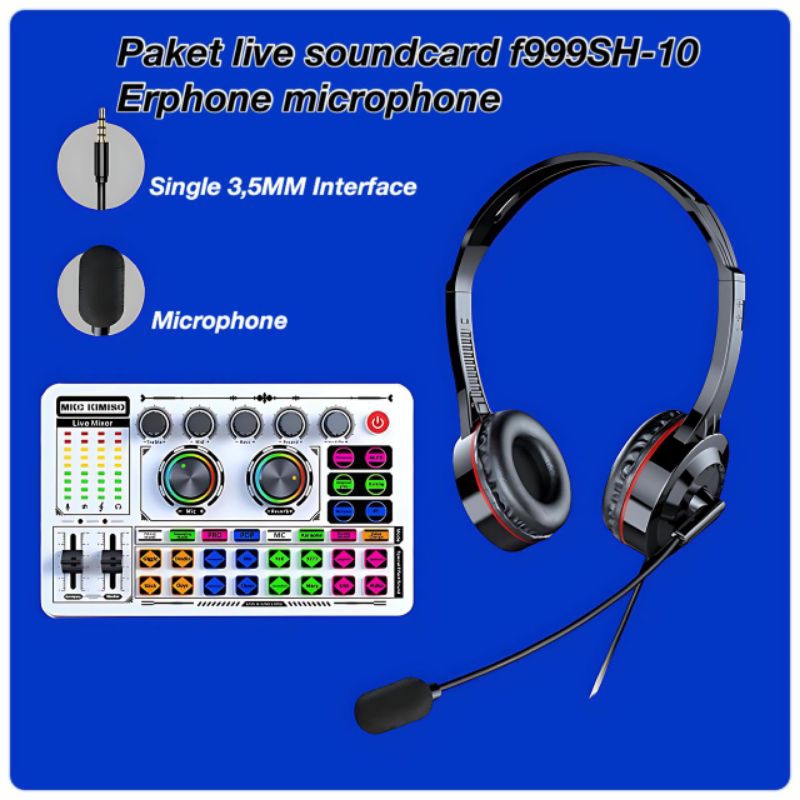 Paket Sound Card F999sy490 Peralatan Live Streaming Karaoke Audio Plus Headphone