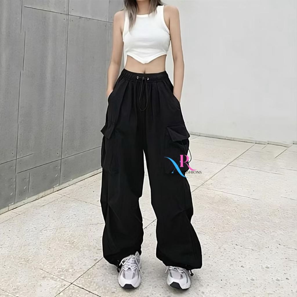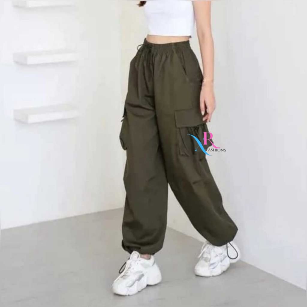 Cargo Pants Wanita Cargoso Highwaist Loose Korean Trouser Gunung