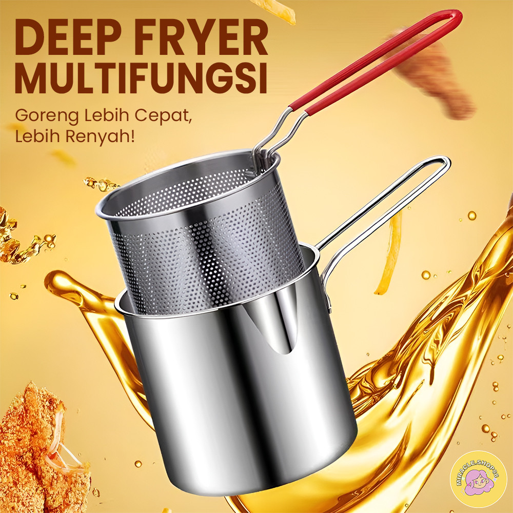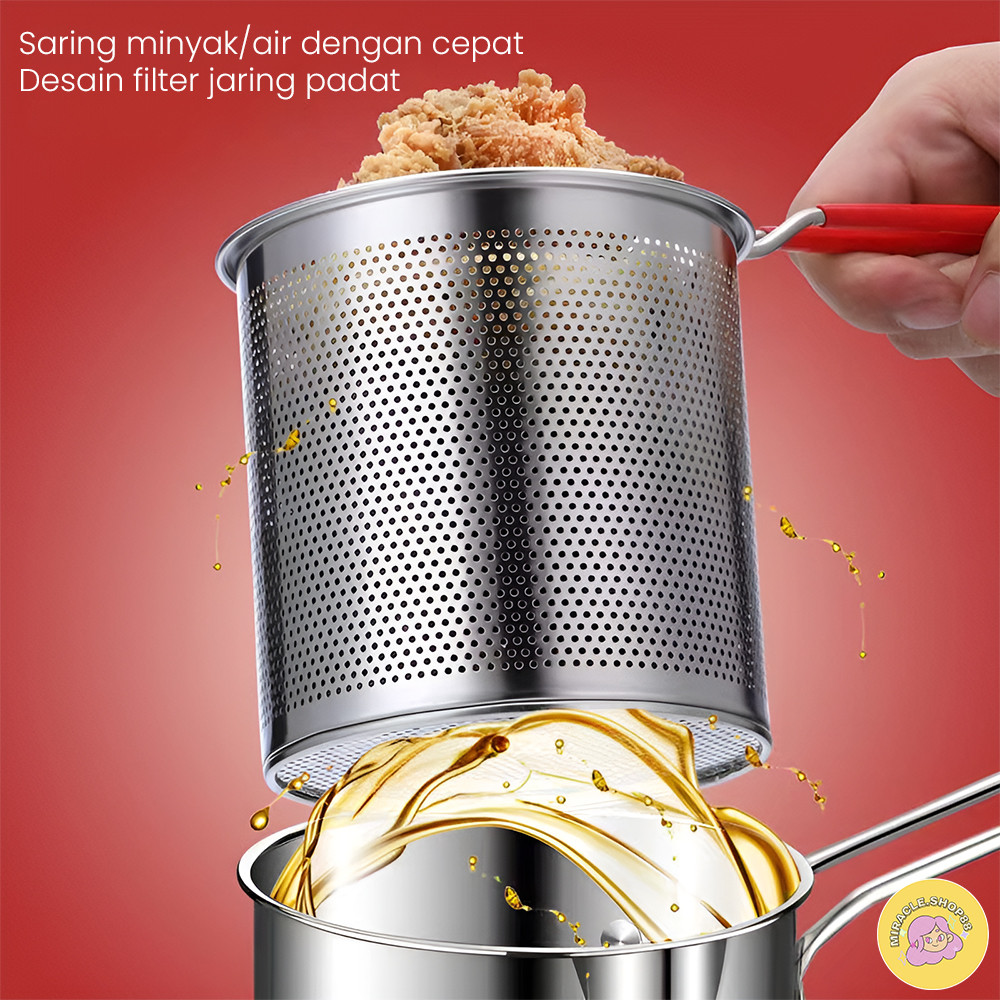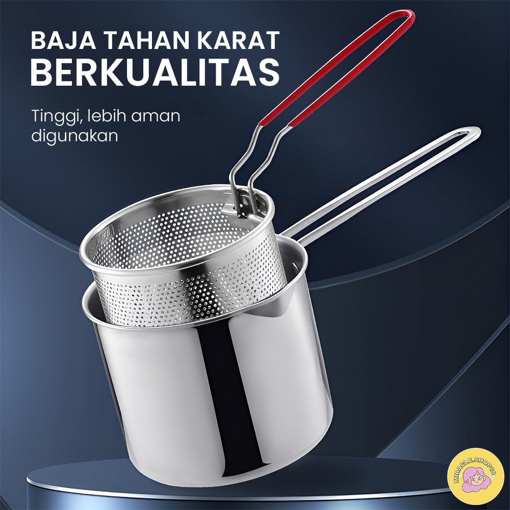 MS Panci dan Saringan Penggorengan Frying Pan Wajan Gorengan Stainless