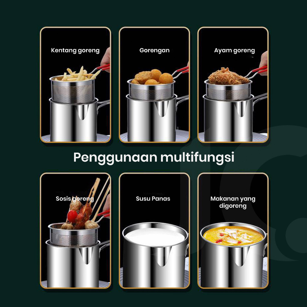 [UNIK88] Panci Multifungsi 5 in 1 Multi Deep Fryer Set Panci Penggorengan Rebus Stainless Steel Saringan Capitan Klip