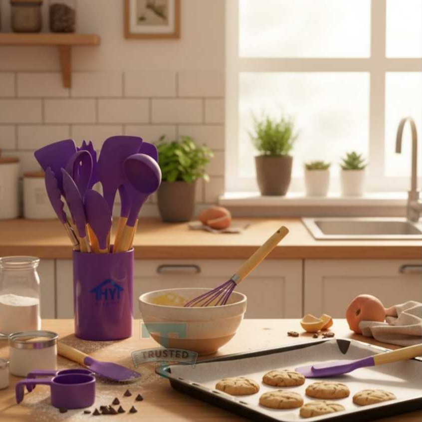 Kitchen Silicon Utensile Set + Bucket Sodet Silikon Spatula Set Utensile Set 12 set