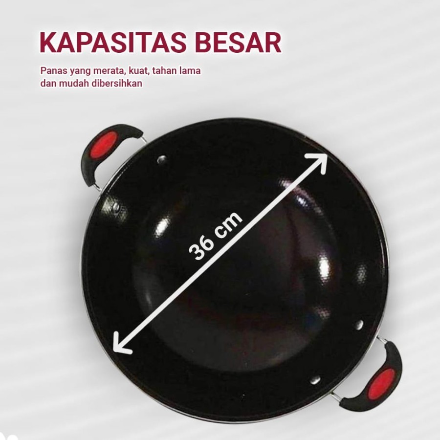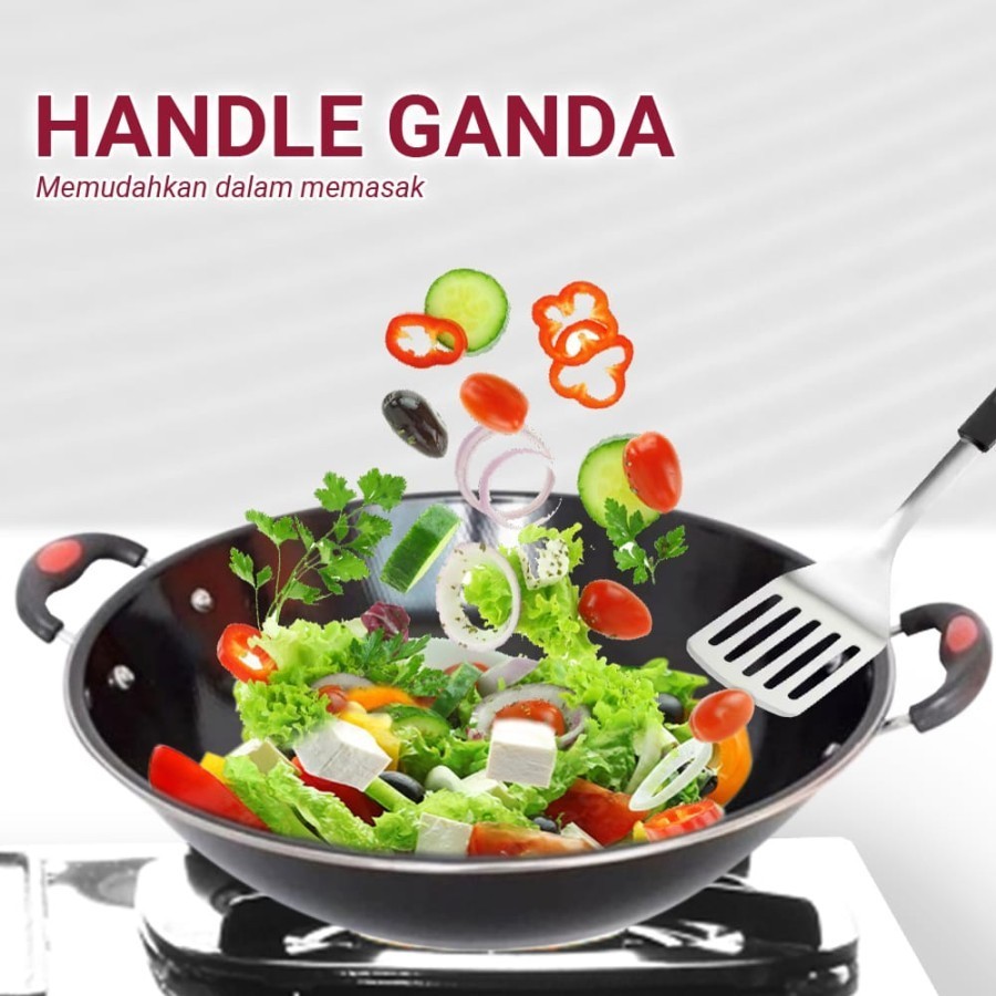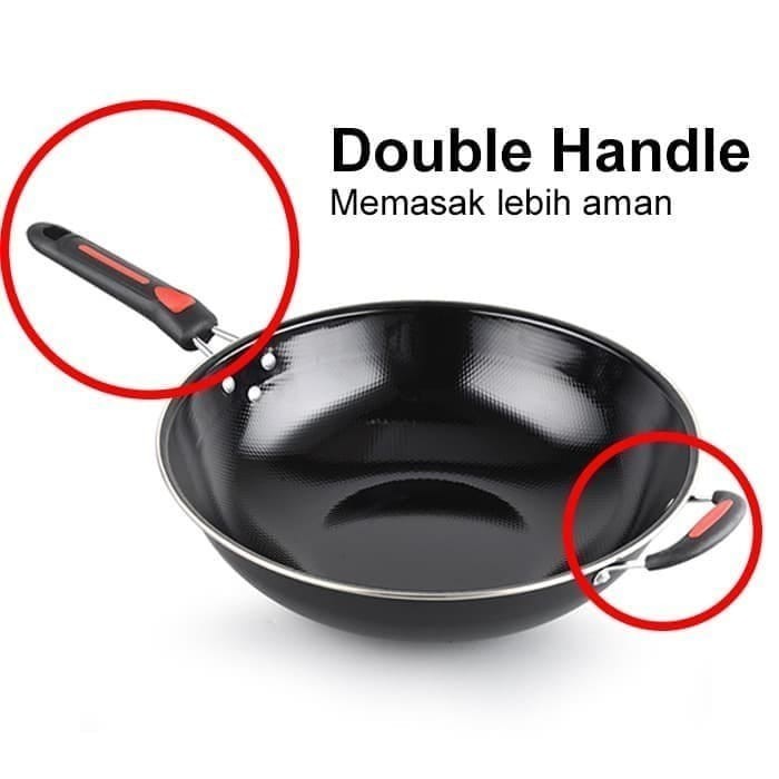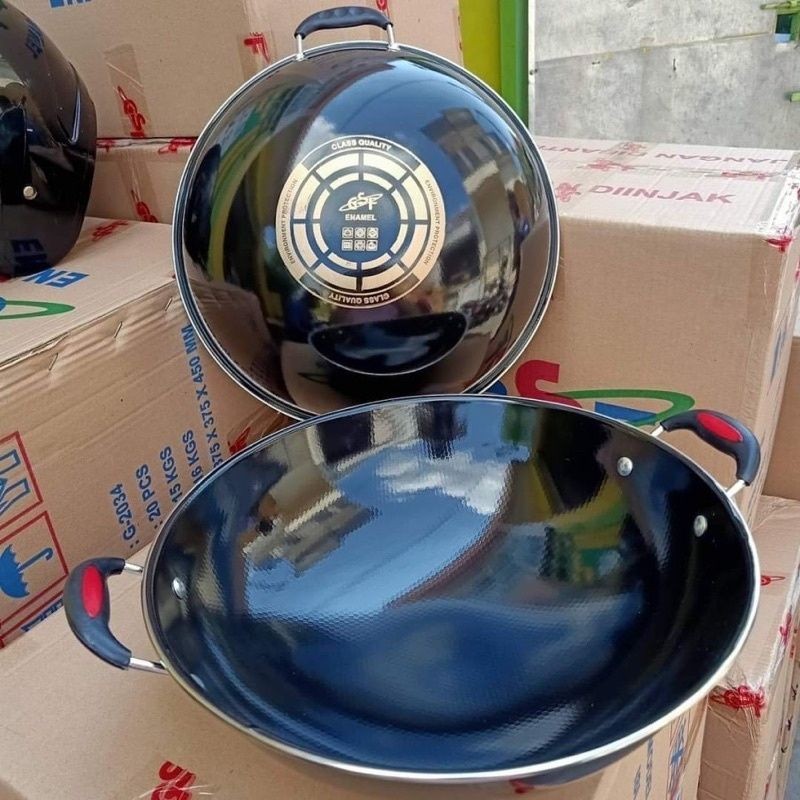 Wajan Enamel Panci Hitam Kuping Gagang Panjang Wajan Anti Lengket Anti Gores 36cm