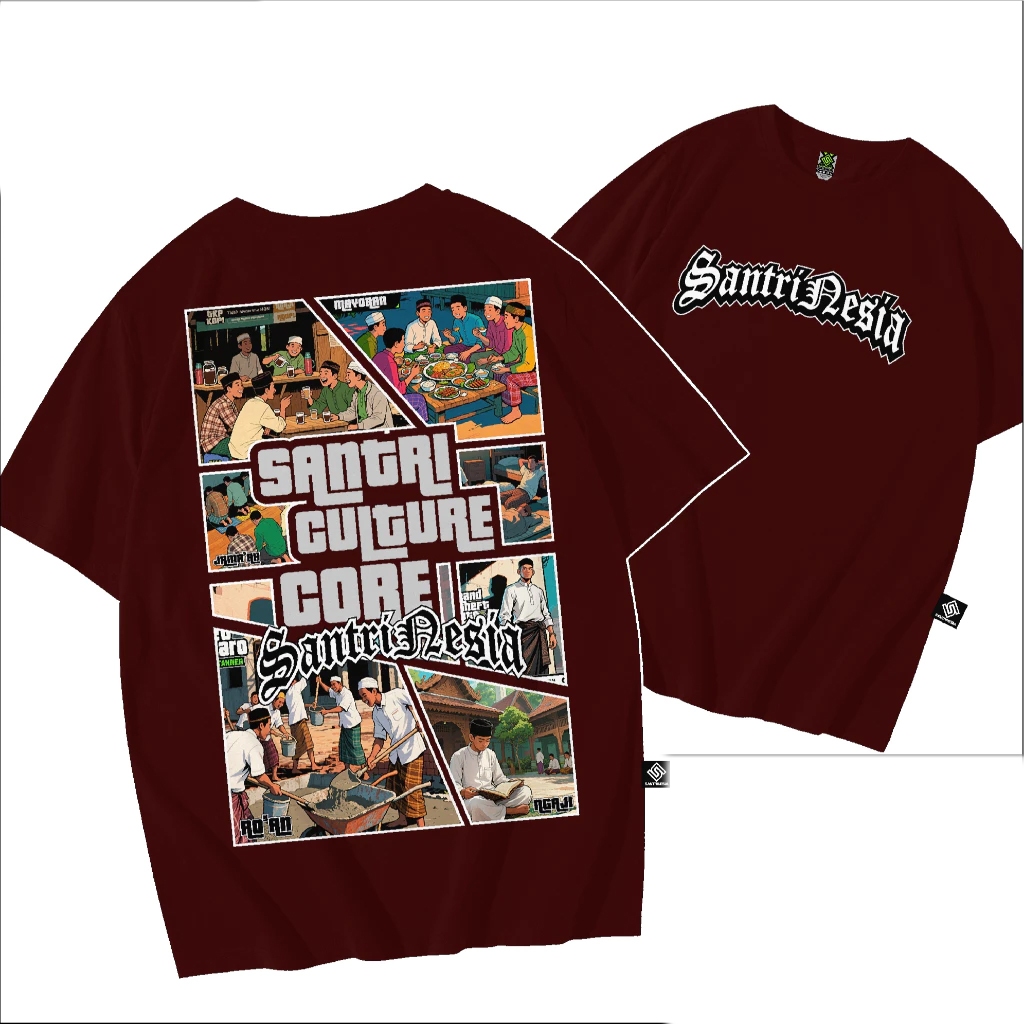 Kaos Santri Culture Core Ro'an Lalaran Ngaji Ngabdi Ngopi Combed 30s Tebal