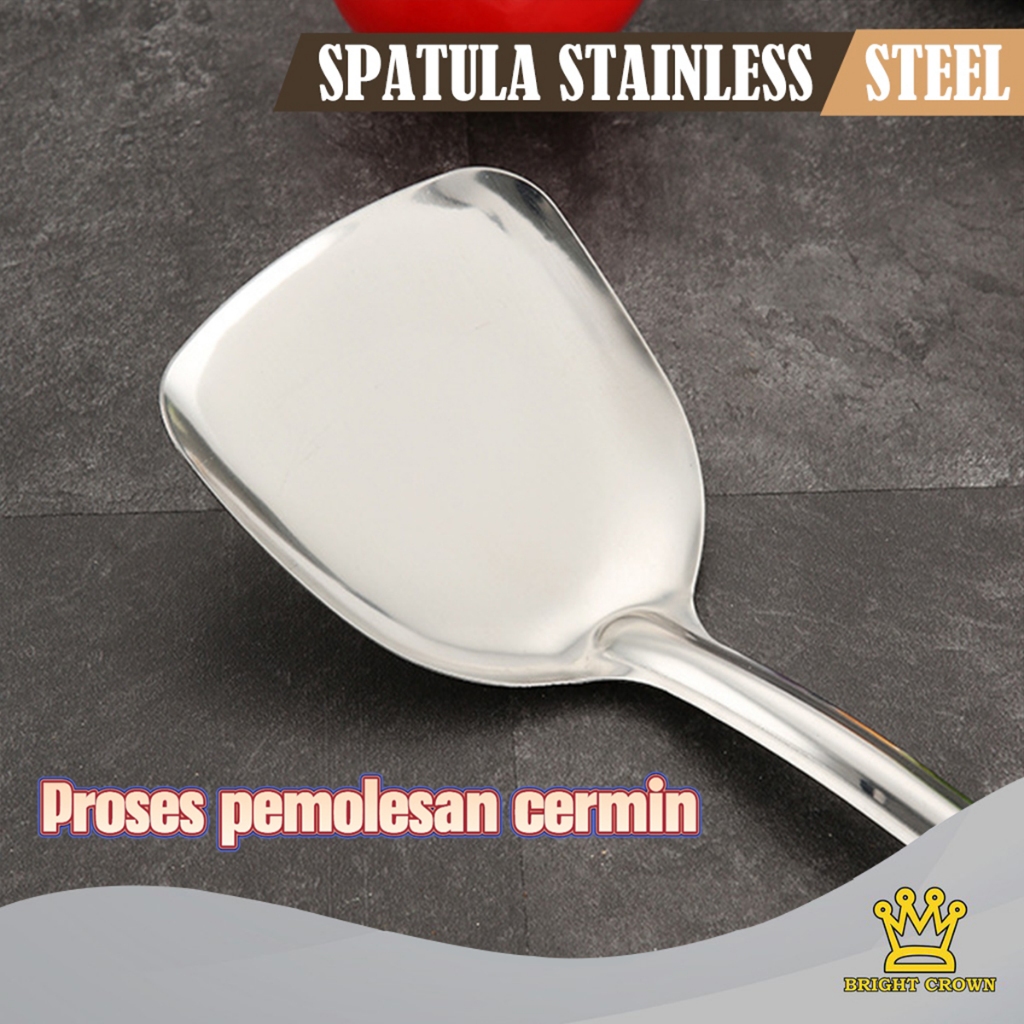Bright Crown Spatula Bahan Stainless Steel Gagang Motif Marmer / Sutil Penggorengan Centong Kuah
