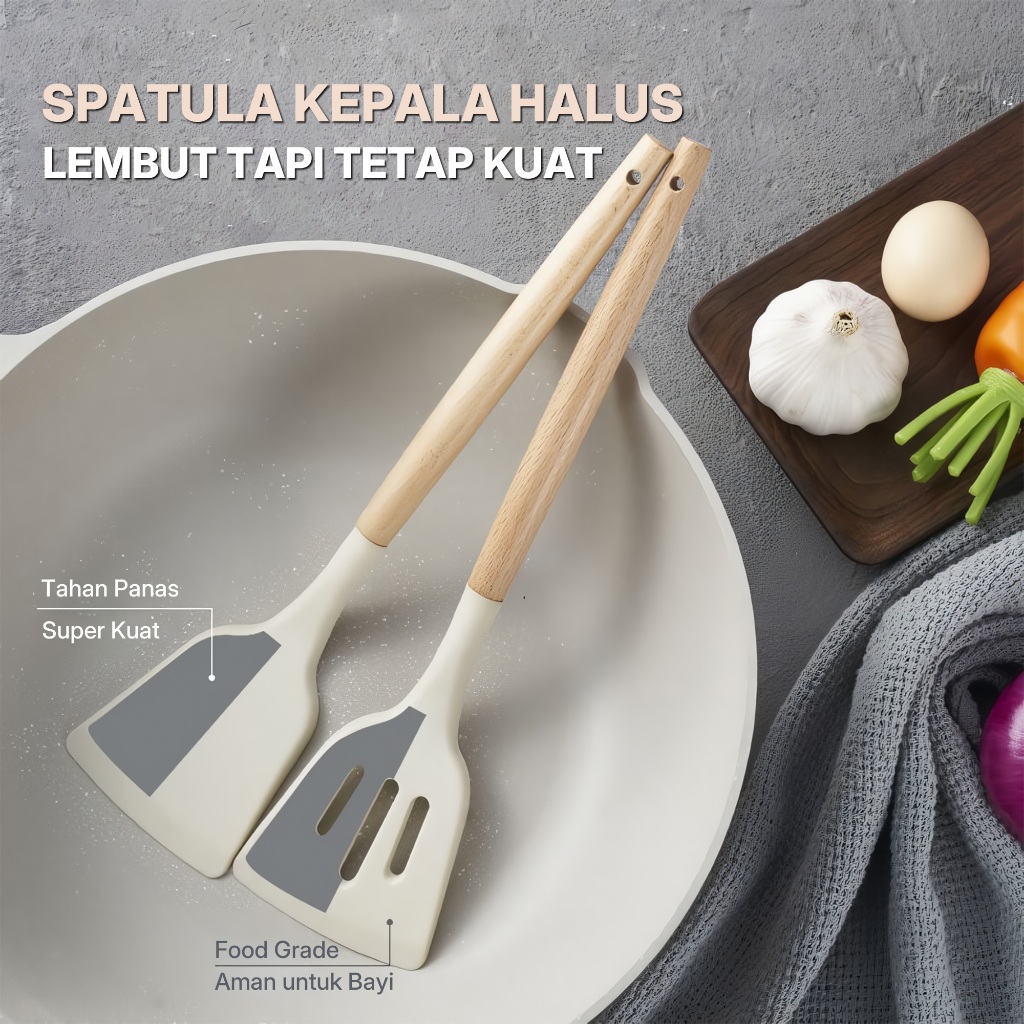 Mullen Spatula Silikon Kuat Alat Masak Tumis Goreng - Spatula Set 3 Pcs