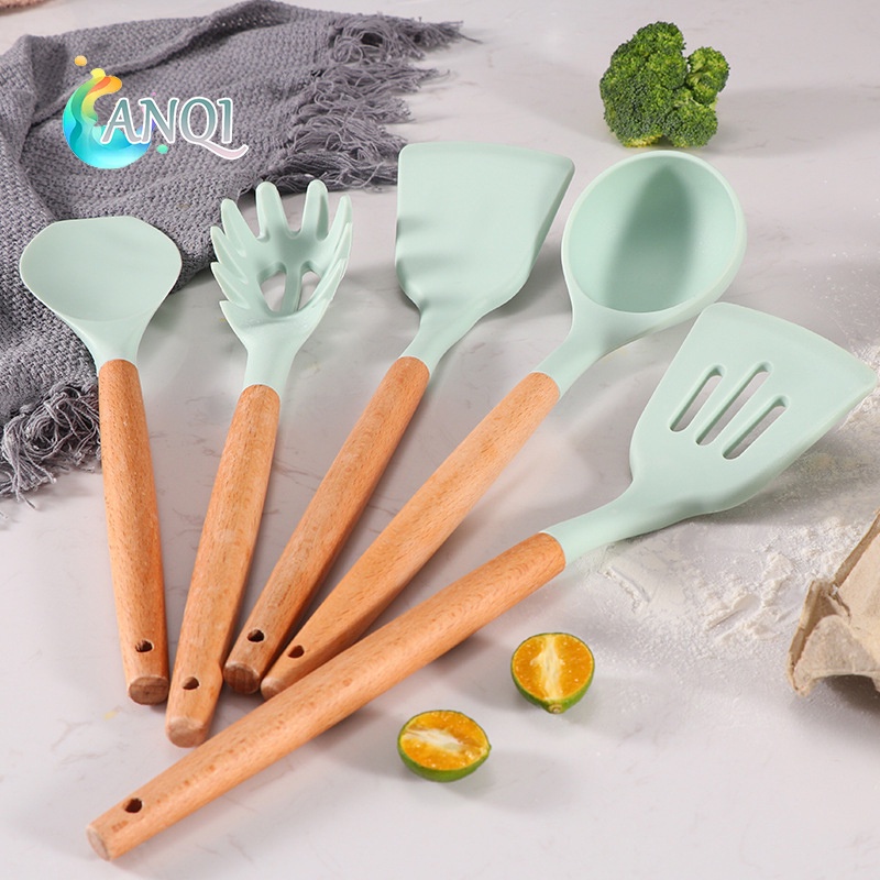 ANQI SHOP Silicone Utensil Set 12pcs Peralatan spatula silikon sutil Kitchen Set Free Wadah VS-1809