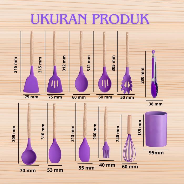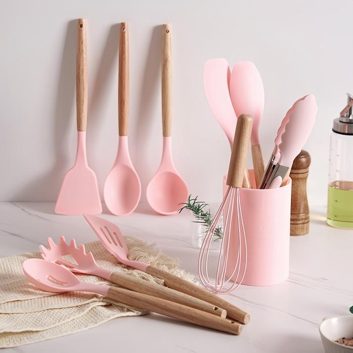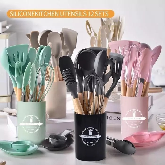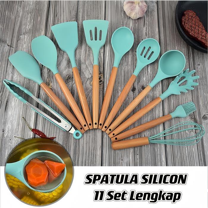 Spatula Silicone Set 12Pcs Wadah / Spatula Peralatan Masak Sutil Pegangan Kayu Baking Set Alat Masak 12 pcs Kitchenware